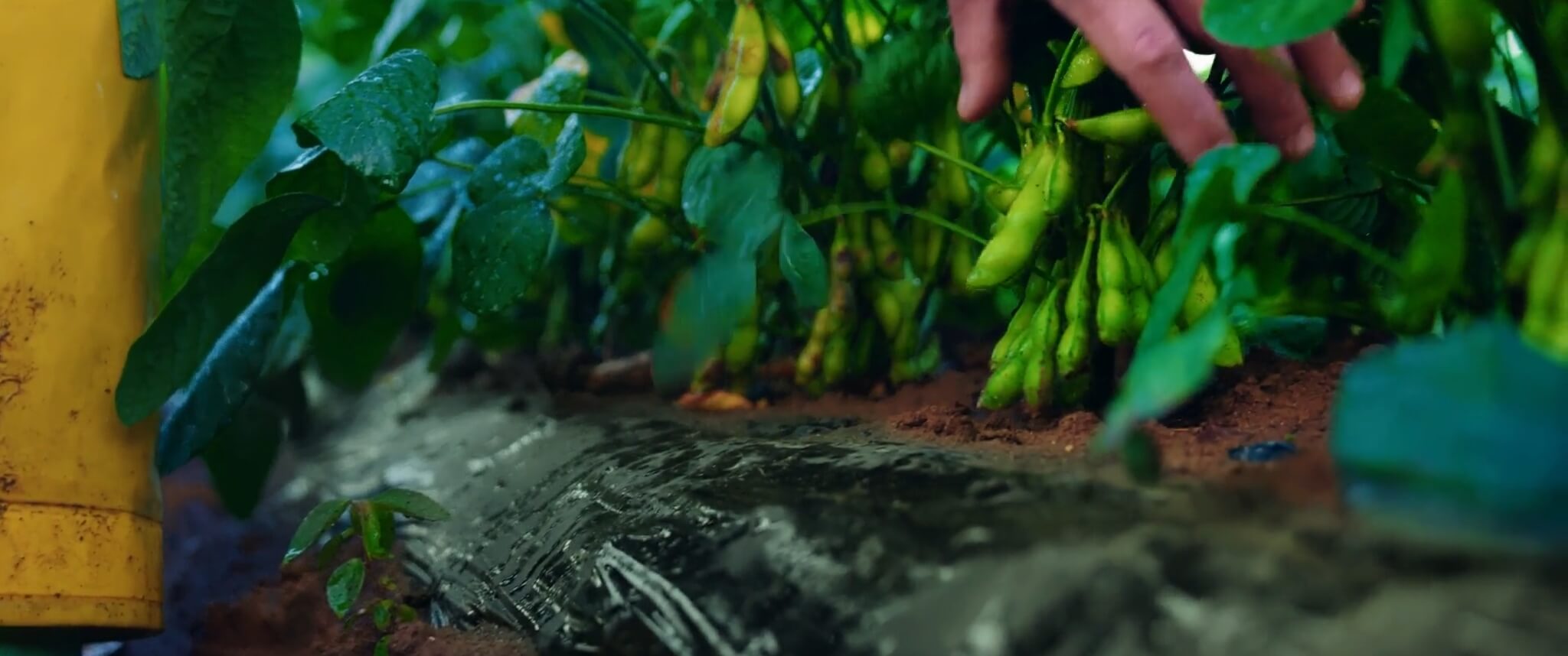 撮影日数は2日。1日目は枝豆農家さんでの早朝収穫、2日目は店舗での出荷や買い物の様子を収めました。ドローンによる空撮から、カメラをカートに載せた低いアングルまで、多彩なカメラワークで場の空気と人の表情を細部まで描写。映像の切り替えに段ボールの開封を使うアイデアは、撮影当日に生まれたものです。現場のひらめきや遊び心も取り入れながら、チーム一丸で「行ってみたい」と思える映像を完成させました。